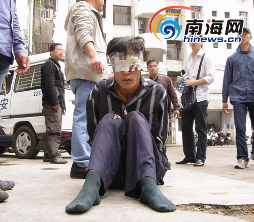 中午12時(shí)30分,記者接到報(bào)料趕到海口市忠介派出所時(shí),兩名搶劫金項(xiàng)鏈的劫匪被蒙住雙眼接受調(diào)查。被搶項(xiàng)鏈的鄭先生告訴記者,他當(dāng)天中午路過(guò)大園路準(zhǔn)備回家,沒(méi)想到突然有人從后面抓住了他脖子上的項(xiàng)鏈,用力扯斷后,迅速逃跑了!拔耶(dāng)時(shí)還沒(méi)反應(yīng)過(guò)來(lái),只看到兩個(gè)男的騎著摩托車快速跑了!斌@魂未定的鄭先生說(shuō),他上前去追了幾步,但還是放棄了。據(jù)介紹,正當(dāng)他手足無(wú)措時(shí),兩名騎摩托車的飛鷹大隊(duì)隊(duì)員在他身邊出現(xiàn),一邊催促他報(bào)警,一邊緊追兩名劫匪。