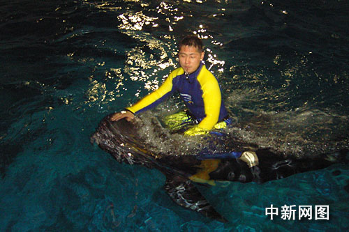 中新網(wǎng)杭州4月13日電(見習(xí)記者 王磊)2009年4月底,第五屆中國(guó)國(guó)際動(dòng)漫節(jié)即將在浙江杭州正式拉開帷幕,據(jù)悉,杭州極地海洋公園將首次與動(dòng)漫節(jié)進(jìn)行合作,屆時(shí)將首次推出領(lǐng)航鯨表演,日前,前期訓(xùn)練正在緊鑼密鼓的進(jìn)行中,據(jù)極地海洋公園有關(guān)負(fù)責(zé)人介紹,領(lǐng)航鯨表演在世界上也數(shù)首次,在中國(guó)國(guó)內(nèi)更是首例,動(dòng)漫節(jié)期間兩只領(lǐng)航鯨將會(huì)為游客們將帶來一場(chǎng)別開生面的視覺盛宴。海洋公園有關(guān)負(fù)責(zé)人透露其中一項(xiàng)表演是工作人員騎在鯨魚身上環(huán)場(chǎng)一周,那名工作人員將幸運(yùn)的成為了中國(guó)首位“鯨騎士”。