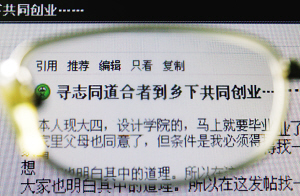 “但會有愿意去鄉(xiāng)下的女孩么?”“OXY-001”在BBS上發(fā)帖《尋志同道合者到下鄉(xiāng)共同創(chuàng)業(yè)》!癘XY-001”在帖子里說:“你要是夢想著找一帥哥就別來了,你要想找一錢包就別見了!你要真是一仙女我也接不住,沒期待您長得跟畫報封面一樣,能做賢妻良兒媳,外表時尚,內(nèi)心保守,身心都健康的一般人就行,要是多少還有點(diǎn)婉約那就更靠譜了!”
