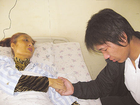 其實,早在2006年,在母親患病中期,兒子常津銘就從網(wǎng)上查到關(guān)于肝臟移植手術(shù)的資料,但沒想到母親的病真的發(fā)展到這一步。當看著往日的漂亮媽媽皮膚黑黃,人也越發(fā)消瘦,兒子的心里難受極了。他安慰母親:“老媽,你放心,需要換肝我一定給你!碑敃r,媽媽愣住了:“兒啊,你胡說什么,媽都這么大年紀了,你以后的路還長著呢!”“不行,老媽,我能救你而不救,我會遺憾一輩子的!”