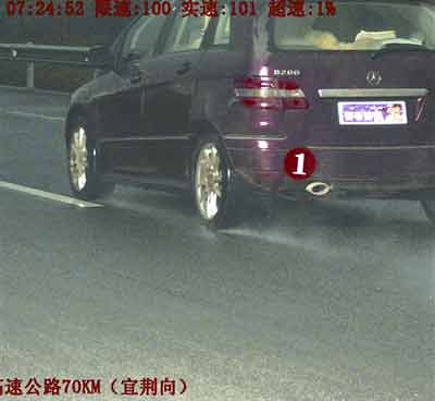 昨日上午7時許,省高管十六大隊(duì)電子眼監(jiān)控到兩輛故意遮擋號牌的車輛,一輛粘貼著“娶老婆嘍”車牌的奔馳轎車和一輛粘貼著“我要結(jié)婚嘍”車牌的奧迪轎車,正一前一后行經(jīng)荊宜高速公路70KM處,雷達(dá)測速儀顯示這兩輛高級轎車車速并不快。