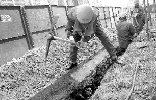 昨日上午,冉屯路清城美苑小區(qū),自來水公司正對該小區(qū)庭院管網(wǎng)重新鋪設(shè)管道,原因是該小區(qū)目前使用的管網(wǎng)由開發(fā)商出資鋪設(shè),且沒有經(jīng)過驗收,入住2年爆管50多次,報修100多次,鋪設(shè)的PE管材屬于被禁用產(chǎn)品。
