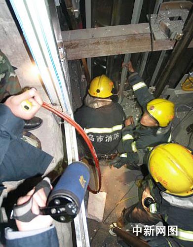 21時21分,消防官兵到場后發(fā)現(xiàn),事故現(xiàn)場是一幢在建的高層住宅樓,據(jù)安裝電梯的一名負(fù)責(zé)人講,事發(fā)前電梯停在28樓,當(dāng)時有兩名工人在電梯內(nèi)施工,其中一名在轎廂頂部,另外一名則在轎箱內(nèi)部,電梯突然失去控制后向下墜落,一直墜到了底層,兩名工人全部被困。電梯間內(nèi)則堆滿了鋼絲繩和一些零部件,轎箱根本無法向提升,現(xiàn)場的工人們只把轎廂上面的那名工人救了出來,而轎廂被壓在了底層,加一名工人仍被困在轎廂內(nèi)。