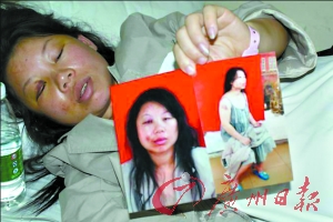昨日,記者在松崗人民醫(yī)院見到卿女士,雖然事情已經(jīng)過去了3天,但是卿女士還是顯得十分虛弱,全身布滿傷痕,眼睛周圍高高腫起。