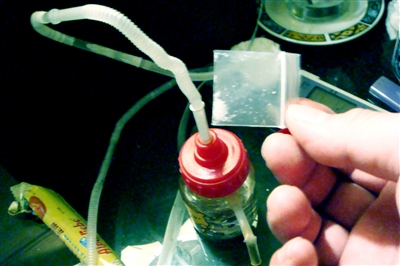 燈一打開,只見茶幾上擺著吃剩的生日蛋糕,3個(gè)用來吸食新型毒品的瓶子,臥室桌上也擺著瓶子,散落著大量的塑料吸管。之后,該房間的6男3女全部被帶回分局進(jìn)行尿檢,證明均吸食了麻果。