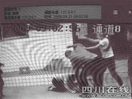 記者從錄像中看到,事情已發(fā)生約10分鐘左右時(shí),受傷的田曉蘭坐在辦公樓大門口哭泣。突然,一個(gè)蓄平頭的高個(gè)子沖過來,一拳打在她頭上,隨即又揪住田頭發(fā),拉到路中間,將其摔倒在地,用腳踢頭部,然后又拳腳相加,任憑旁邊另外一位女收費(fèi)員如何勸解,絲毫沒松手。其間,一個(gè)穿制服的男子過來勸解,但該男子也仍不予理會(huì),其粗暴令人震驚。