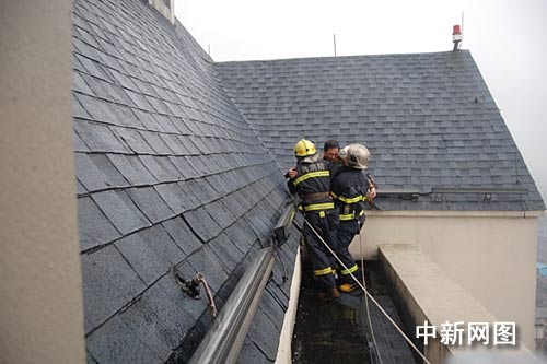 紹興市越城大隊官兵接到報警電話后趕到現(xiàn)場,只見輕生者跨坐在兩房間的對角處,身體不時地顫抖著,嘴角已經(jīng)凍的發(fā)紫。加上一直下著雨,樓面較滑,一不小心就會失足滑下,后果不堪設(shè)想。