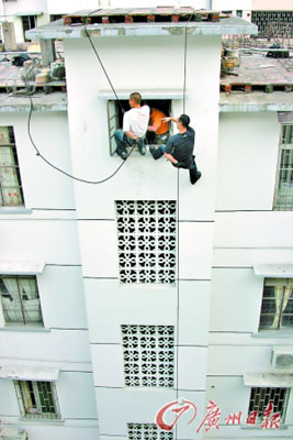 昨日下午,一名男子在佛山市禪城區(qū)嶺南大道一居民樓威脅要跳樓,佛山市、區(qū)兩級(jí)公安機(jī)關(guān)及消防部門經(jīng)勸說未果后,采取行動(dòng),兩名特警從天而降,滑至窗口位置將該男子牢牢控制住,聯(lián)合消防隊(duì)員一起強(qiáng)行將其救下。