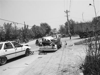 據(jù)附近廢品收購點(diǎn)的一位目擊者稱,昨日上午10點(diǎn)55分,106國道新(洲)徐(古)公路交叉處,一輛白色捷達(dá)小轎車沿新徐公路自東向西疾馳,與沿106國道由北而南駛來的一輛重型自卸貨車相撞。轎車右后側(cè)被撞后發(fā)生180度大旋轉(zhuǎn),隨后又撞到路邊一輛停著的小車方才停下。據(jù)悉,捷達(dá)小轎車上有四男一女,司機(jī)鄭某受傷,兩男當(dāng)場(chǎng)身亡,另一男一女被送往醫(yī)院,其中男子在送醫(yī)途中死亡。