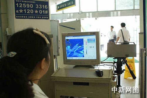 中新網(wǎng)重慶5月12日電 (曾理 杜遠(yuǎn))在成都確診中國內(nèi)地首例甲型H1N1流感患者的當(dāng)天,三軍醫(yī)大重慶新橋醫(yī)院在門診大廳門口增設(shè)紅外熱線測溫儀,篩查赴該院就診人群中的高溫患者。