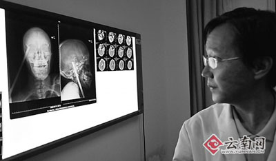 記者從院方了解到,小賀是頭外傷右肘部貫通傷,從X光片上可以看到,約長為8厘米的鋼筋刺進(jìn)頭顱,目前有生命危險(xiǎn)。由于不能確定頭顱內(nèi)血管受損的情況,院方不敢輕易取出鋼筋,只有先請(qǐng)消防人員分別將刺進(jìn)手臂和頭顱部分的鋼筋截?cái),進(jìn)行止血等分別處理、規(guī)避各種風(fēng)險(xiǎn)后,制定出最佳的方案才能實(shí)施手術(shù)。(記者 何謹(jǐn))(春城晚報(bào))