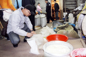 經(jīng)過一天的檢查,造假窩點(diǎn)的負(fù)責(zé)人一直沒有露面;槿藛T將全部藥品原料、成品裝袋,準(zhǔn)備沒收。幾名工人不斷地阻攔稽查人員,理由是“這些藥還沒干燥好,裝走了就不能賣了!