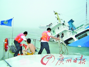 據(jù)廣州沙角海事處張杰副處長(zhǎng)介紹,昨天下午4時(shí)許,該海事處接到報(bào)警稱“有船發(fā)生碰撞!”接警后,該海事處立即出動(dòng)包括海特1115號(hào)、海特1114號(hào)共8艘船只趕往事發(fā)海域。7分鐘后,他們便趕到了事發(fā)海域,而后立即開展搜救落水船員行動(dòng)。