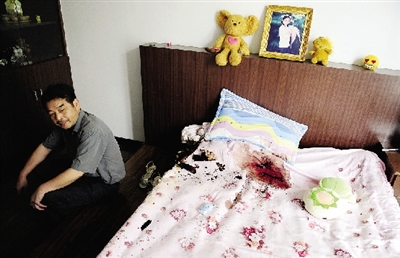 昨日上午,記者驅(qū)車(chē)趕到現(xiàn)場(chǎng)。走進(jìn)房間,防盜門(mén)、窗戶(hù)、地板、床上到處都是血跡。兩間臥室的席夢(mèng)思被燒糊。