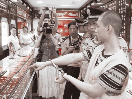 為了試探16歲的梁某是否具備搶劫金店的膽量,謝賢春精心策劃并指使梁某實施了2008年重慶銅梁“11·28”金店劫案,搶劫后按事先設(shè)計的線路成功逃過警方追捕。隨后,謝、梁、蒙3人回到自貢,開始策劃對威遠金店搶劫案。