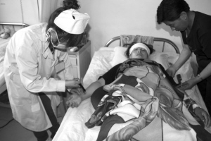 2日7時(shí)許,記者坐了一夜火車趕到集賢縣。一下車就來到集賢縣第一人民醫(yī)院住院處。此時(shí),農(nóng)用三輪車上的傷者已被分別安置到四樓與五樓的病房。今年53歲的張某是繁榮村的村民,此次事故中他腰椎骨折、右腿腿骨斷了兩節(jié)、左腿脫臼, 身體無法動彈。張某的家人坐在病床旁,正給他擦洗雙手,等待護(hù)士為他靜點(diǎn)。