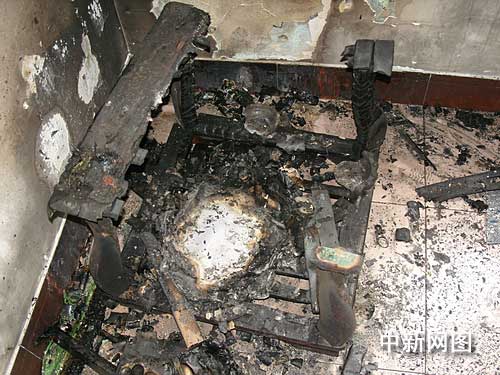 房子坐北朝南,有獨(dú)立樓梯,樓下有四間,樓上兩間外加一個(gè)平臺(tái)。房子失火后一片狼藉,面目全非,污水橫流,到處黑乎乎,雜亂無(wú)章。