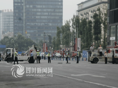 記者在現(xiàn)場未見到救護(hù)車輛,F(xiàn)場有近10輛消防車,交警正在疏導(dǎo)交通,成都主干道人民南路二段交通并未中斷。