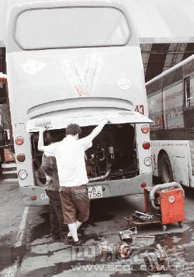據(jù)維修工人介紹,冒煙的公交車的確出了故障,但問題不大,主要是發(fā)動機排氣管上的空氣壓縮機壞了,更換新的壓縮機后就不會有問題了。記者仔細(xì)觀察了被換下的空氣壓縮機,這是一個類似于鼓風(fēng)機的東西,據(jù)說加裝在排氣管上后,可以利用空氣動力學(xué)原理在原先的基礎(chǔ)上加大車輛動力!氨确秸f原來的柴油機動力是150馬力,加裝了空氣壓縮機就可以達(dá)到200馬力或者更多!本S修工人說。