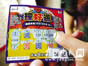 記者接到報(bào)料后,隨即來(lái)到了這家體彩銷售點(diǎn),見(jiàn)到了那張“中獎(jiǎng)”的“撞好運(yùn)”彩票。該彩票名為“撞好運(yùn)”,銷售價(jià)格為5元錢一張,一張彩票有8次中獎(jiǎng)機(jī)會(huì),其中左邊的中獎(jiǎng)“好運(yùn)牌”是“3”和“7”,而被人刮開(kāi)的“你的牌”區(qū)域內(nèi)確實(shí)也有個(gè)“3”字,對(duì)應(yīng)的獎(jiǎng)金是“10000元”,但只要仔細(xì)一辨認(rèn),就能發(fā)現(xiàn)后者“3”字是由“8”字刮破左邊弧形形成缺口而變成的。