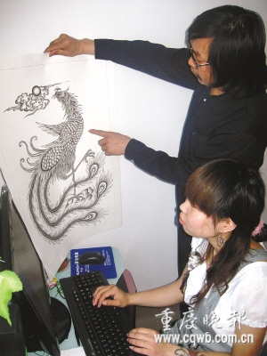 “年輕人要有事業(yè)心!备赣H曹術(shù)認(rèn)為,中國人自稱龍的傳人,炎黃子孫,對龍應(yīng)該有一種特殊的感情,女兒的屬相也屬龍,用手中的筆來描繪龍、贊美龍,本就是一件很自豪的事情。曹術(shù)說,千龍千鳳圖是夫妻畢生的追求和夢想,更希望女兒能將此發(fā)揚(yáng)光大。母親林雨梅告訴記者,丈夫起草圖、自己負(fù)責(zé)涂繪、女兒除了涂繪還負(fù)責(zé)電腦設(shè)計和文字工作,缺了誰都不得行。