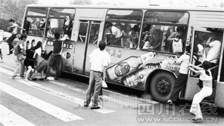 昨日上午8時(shí)左右,一輛8路空調(diào)車(chē)駛至成都萬(wàn)年場(chǎng)公交站時(shí),有位女乘客突然尖叫,車(chē)上大約60名乘客頓時(shí)慌作一團(tuán)。司機(jī)迅速將車(chē)?柯愤叢⒋蜷_(kāi)車(chē)門(mén),但仍有乘客打碎玻璃從車(chē)窗跳下“逃生”,1分鐘不到所有人全部逃離車(chē)廂。事后證明只是虛驚一場(chǎng),所幸沒(méi)有造成人員傷亡。