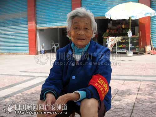 昨日中午,在廣安市城南五福西路出現(xiàn)了這樣的一幕:烈日下,一位頭發(fā)全白、穿著樸素、卷著褲管、手拿蒲扇的老太坐在街道邊的樹蔭下,袖子上戴著一個鮮紅的袖章,上面寫著“治安聯(lián)防”。當時氣溫在30度左右,雖然是在樹蔭下,但是還是能感受到那股讓人煩躁和熱烘烘的暑氣。出于好奇,記者便上前問了個究竟。