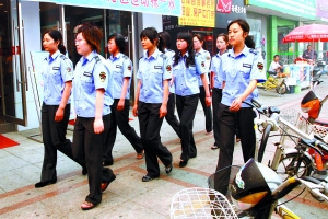 昨日,(江蘇)連云港市東?h女子城管隊員在縣城步行街巡邏。為充分發(fā)揮女性在城管執(zhí)法工作中特有的耐心、細心和善于溝通等特點,著力打造城管行政執(zhí)法新亮點,近日,連云港市東?h成立了城管行政執(zhí)法大隊女子中隊。該女子中隊目前共有10名隊員,主要負責在中心城區(qū)主干道進行城管巡查,通過女性特有的親和力和感染力,化解執(zhí)法過程中出現(xiàn)的矛盾。