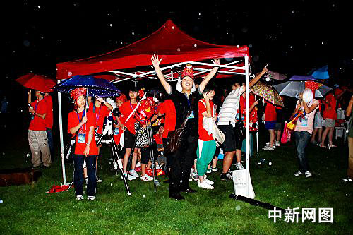 烏克蘭日全食觀測隊、俄羅斯觀測隊、北京日全食觀測隊……各個隊伍在雨中緊張地等待著,現(xiàn)場的喇叭里不斷傳來其他觀測點的最新消息,然而8:22分初虧的時刻到來時,雨未停。終于9:35,日全食的一刻天全部黑了下來,雖然看不到,但現(xiàn)場還是響起了持續(xù)不斷的歡呼和尖叫聲,五分鐘的時間里,黑暗的山坡上閃關燈不斷,儼然一個“巨星演唱會”的陣勢。