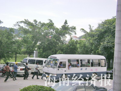 不久,120救護(hù)車趕到現(xiàn)場,拉上9名受傷工人準(zhǔn)備開往三亞市人民醫(yī)院。就在救護(hù)車駛出工地時,一輛車號牌為瓊A05912的中巴車滿載數(shù)十名男子跟蹤其后。救護(hù)車上的工人們感到害怕,要求120救護(hù)車開進(jìn)三亞市公安局求助。