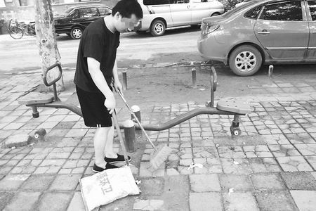 昨日上午11時,記者趕到鄭上路省紡機社區(qū)時,看見張月正在清掃小區(qū)健身區(qū)的地面(如圖)。巡防隊員朱幸說,張月的事見報后的第二天,他和隊友郭長河就成了張月家的?,找他談心,經(jīng)多次做工作,張月才同意到醫(yī)院治療。7月22日,在鄭州市第八人民醫(yī)院治療了一個月的張月,康復(fù)出院回家。到家后,張月仍不愿出門,朱幸和郭長河又多次找張月聊天。社區(qū)主任王曉波也主動到張月家,每天上班時,他都要把張月叫到社區(qū),讓他幫忙干點零活。經(jīng)過溝通和交流,張月變得開朗了許多,成了一名編外保潔員。王曉波說,社區(qū)為張月申請辦理了低保,讓他享受每月275元的最低生活保障! 跤浾呃顛箤嵙(xí)生吳瓊文首席記者閆化莊圖