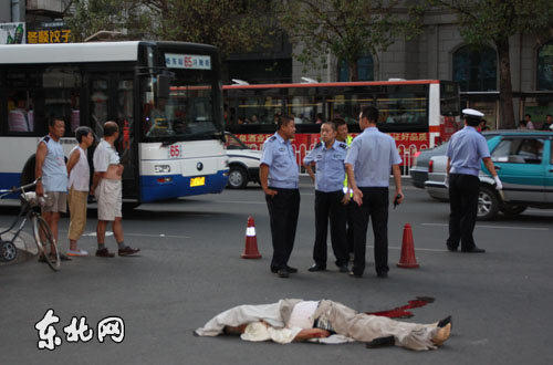 11日18時30分,記者在現(xiàn)場看到,死者頭部已被覆蓋,身旁有一灘長約一米的血跡。哈爾濱市交警支隊道里大隊已在現(xiàn)場處理相關(guān)事宜。據(jù)目擊者介紹,事故發(fā)生時間為16時40分許,一公交車在拐進(jìn)站臺時,將一男子當(dāng)場撞死。事發(fā)僅10分鐘,道里大隊的工作人員就趕到現(xiàn)場。