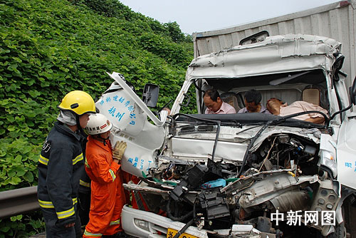 在現(xiàn)場,高速交警部門已經(jīng)對杭州方向?qū)嵤┚。半掛車停在高速公路最右?cè)緊急通道上,車廂底部保險杠左側(cè)被撞得卷了起來,后部懸掛的備胎也撞得掉了下來。輕型廂式貨車整個駕駛室被撞得面目全非,發(fā)動機脫落,駕駛室儀表盤將三名司乘人員緊緊的包裹在一起,只露出三人的腦袋,其中駕駛員和坐在中間位置的隨車人員已經(jīng)當場死亡,右側(cè)副駕駛室位置另一名隨車人員頭部和雙腿傷勢嚴重。