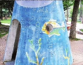 昨日有市民投訴稱,市青少年宮內(nèi)—處“趣味天地”的兒童游樂場(chǎng)“城堡”,被—些入視為“愛情宣言”之處,刻寫得面目全非。