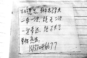 6月12日早上,洛陽市公安局澗西分局第一責(zé)任區(qū)刑警隊(duì)接到幾名出租車司機(jī)報(bào)案,稱他們的出租車牌照夜晚被盜,并且每輛車上都發(fā)現(xiàn)一張紙條,上面寫著:“撿到貴車牌,聯(lián)系電話1××××××××××,誠信是金!彼麄兇螂娫掃^去,接電話的男子要求他們往一張銀行卡上各打進(jìn)100元,然后就告訴他們車牌在哪里。