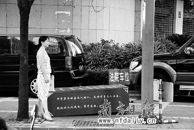 昨日上午8時許,該離婚訴訟案還沒開審,當事人李女士已將棺材運至法院門口。記者趕赴現(xiàn)場時見棺材已被法警抬走,放置在一輛囚車里。在囚車旁,記者看到棺材上寫著:“今日殘民告官,以死抗婚,禪城區(qū)某法官剝奪本人權(quán)利,操縱本人婚姻,捏造案件,欺壓婦幼……”被詛咒的法官表示,他只是按照法律程序辦事,并未“剝奪”李女士的權(quán)利。