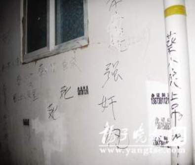 昨天上午,記者接到家住南京茶南小區(qū)明園居民的投訴,稱在該小區(qū)一戶居民家門外,被人寫了十幾處的污言穢語。記者趕到現(xiàn)場(chǎng)采訪看到,這些寫在墻上的語句里,充斥著“上吊”、“自殺”、“人渣”等穢語,被疑為當(dāng)事人可能是舉報(bào)別人的非法生意而遭報(bào)復(fù)。