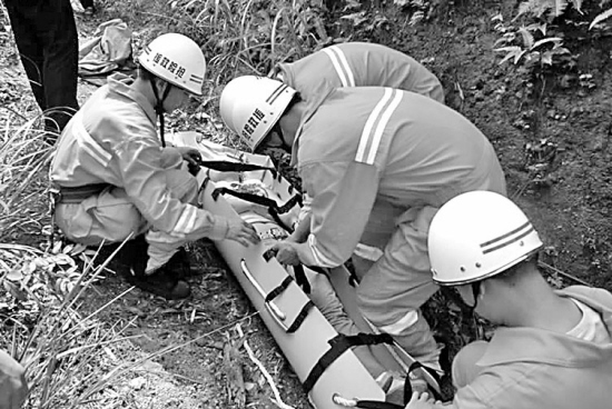 經(jīng)過(guò)1個(gè)小時(shí)營(yíng)救,受傷女子終于獲救,隨即被抬到等候已久的救護(hù)車(chē)上。