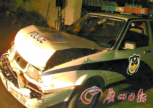盧紹毅駕駛的警車由于受到猛烈撞擊,整個(gè)車頭都被撞爛。“當(dāng)時(shí)精神太集中了,只顧下車追巴士,事后就覺得頭暈暈的,也沒有皮外傷,今天一覺醒來(lái),周身肌肉都很疼痛。”