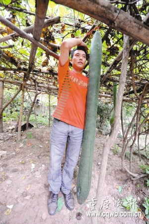 “過兩天我就給土堆挖個坑,再加木棒撐高葡萄架,讓‘姚明’有空間繼續(xù)長!崩虾握f,冬瓜一般每年11月底便會停止生長,屆時若能瓜熟蒂落,他準(zhǔn)備把“姚明”帶到重慶農(nóng)博會上露露臉,也希望專家能解謎。