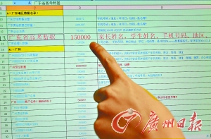 在這份數(shù)據(jù)庫中,記者發(fā)現(xiàn)了一份15萬人的廣東高考數(shù)據(jù),包括家長和學(xué)生姓名、手機(jī)號碼等。群發(fā)公司工作人員表示,這個數(shù)據(jù)是今年最新的,并且暗示“現(xiàn)在剛開學(xué),對學(xué)生家長發(fā)‘銀行轉(zhuǎn)賬類’的挺合適”。