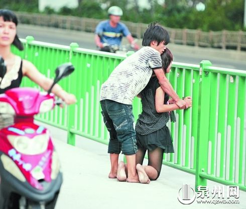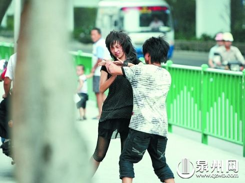 昨日下午4時(shí)15分許,泉州市區(qū)坪山路與寶洲街交界處的鑫億大廈樓下,一對(duì)雙雙赤腳的青年男女拉拉扯扯大聲爭(zhēng)吵,引來(lái)路人圍觀。