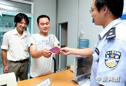 中新網(wǎng)舟山10月1日電 (記者 袁爽) 今天是《浙江省流動人口居住登記條例》正式實(shí)施的日子,在浙江舟山市做鋼筋工的安徽省阜陽小伙子周懷逸一大早便趕到當(dāng)?shù)嘏沙鏊,來領(lǐng)取這張夢寐以求的居住證,從今往后,最為新居民的周懷逸將和當(dāng)?shù)厝讼碛型鹊纳鐣U稀⒐卜⻊?wù)等具體方面的待遇。