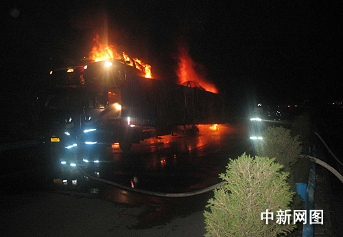 中新網(wǎng)宜昌10月2日電(郭曉瑩 王申)10月1日晚22時(shí)許,一輛裝載有16輛轎車的重慶籍貨車在漢宜高速宜昌方向280公里處起火。貨車上所載16輛轎車全部報(bào)廢,損失高達(dá)一百多萬(wàn)元,所幸未造成人員傷亡。