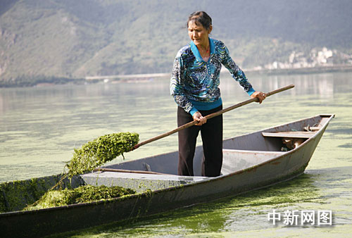 滇池是中國第六大淡水湖,也是目前中國污染最嚴(yán)重的內(nèi)陸淡水湖泊之一。從一九八八年開始,無論風(fēng)吹日曬,每天早上七點(diǎn),昆明西山區(qū)福海街道辦事處新河社區(qū)巾幗打撈隊(duì)的隊(duì)員都會(huì)劃著船進(jìn)入滇池草海,打撈垃圾和水藻。