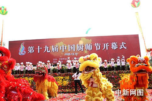 中新網(wǎng)揚州10月18日(記者 崔佳明)第19屆中國廚師節(jié)在中國淮揚菜之鄉(xiāng)揚州盛大開幕。國務(wù)院原國務(wù)委員兼秘書長、第十屆全國政協(xié)副主席王忠禹、水利部原部長、第十屆全國政協(xié)常委、民族宗教委員會主任鈕茂生、國家商務(wù)部副部長姜增偉、原商業(yè)部副部長張世堯、世界廚師聯(lián)合會主席古德穆德森、中國烹飪協(xié)會會長蘇秋成、揚州市委書記王燕文、代市長謝正義和參加首屆中國市長餐飲發(fā)展論壇的19個城市的市長和嘉賓以及來自各省市餐飲行業(yè)的負責(zé)同志和廚師代表出席開幕儀式。