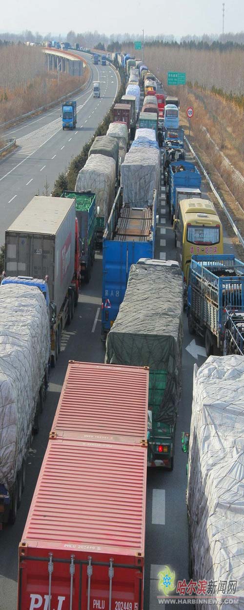 據(jù)路政工作人員介紹,這次嚴重堵車主要是天氣原因,從8日夜里到9日吉林省境內(nèi)共發(fā)生交通事故近20起。