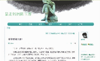 據悉,新浪等網站也為陳玉蓉開了博客。百度中輸入“陳玉蓉的博客”,有3470多條。大多數是好心人收集的暴走媽媽救子的進展!鞍俣劝倏啤毙略隽嗣麨椤氨┳邒寢尅钡脑~條。