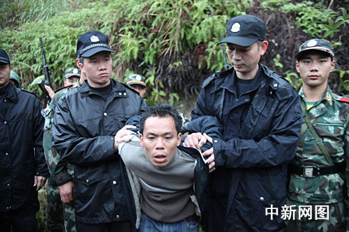 近400名的武警、公安民警以及干部群眾冒著蒙蒙細(xì)雨,分成40多個小組,形成合圍之勢,立馬展開拉網(wǎng)式的搜山行動。經(jīng)過兩個小時(shí)的圍山搜捕,16時(shí)57分,犯罪嫌疑人石順兵在“大紅山”的最高處的草叢中被搜山的武警戰(zhàn)士抓獲。