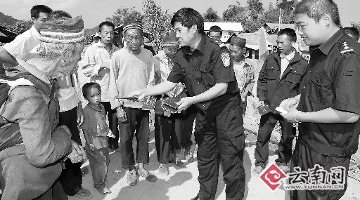 記者昨日由景洪驅(qū)車6個小時,來到這個坐落在深山里的家族村寨。隨行的景洪市公安局民警一進入村寨,便立刻召集村民排隊領(lǐng)取戶口本和身份證。按照相片上的摸樣一個一個仔細核對清楚后,民警將戶口本和身份證一一發(fā)到村民手中。